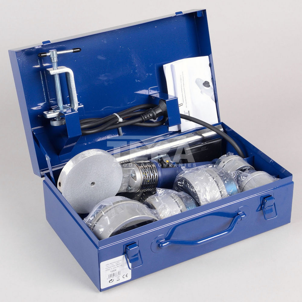 Сварочный комплект P-4a 1200W TW Profi 50-110 - паяльник дисковый 1200 Вт; - насадки парные синие 50, 63, 75, 90, 110 мм; - ножная опора; - зажимная струбцина; - ключ шестигранный; - кейс металлический; - паспорт. |