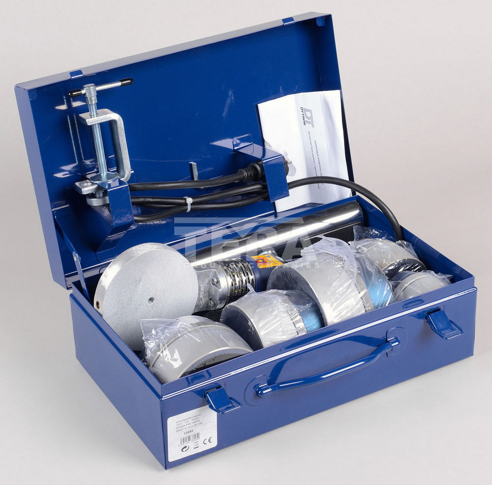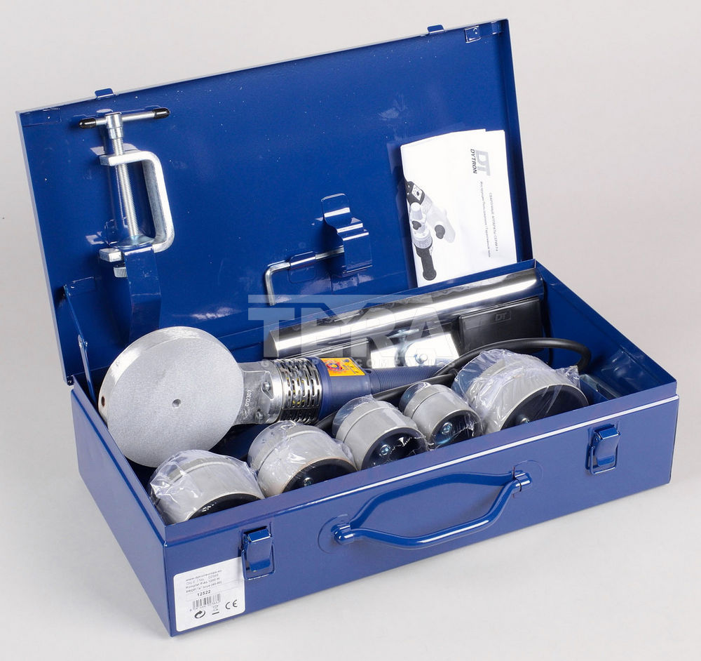 Сварочный комплект P-4b 1200W TW+ Profi 40-90 - паяльник дисковый 1200 Вт; - насадки парные синие 40, 50, 63, 75, 90 мм; - ножная опора; - зажимная струбцина; - ключ шестигранный; - кейс металлический; - паспорт. |